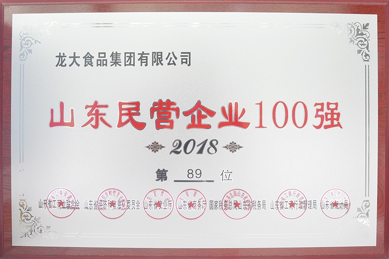 近日,由山東省工商業聯合會、山東省經濟和信息化委員會、山東省農業廳、山東省商務廳、國家稅務總局山東省稅務局 、山東省工商局、山東省統計局聯合主辦的2018年山東省民營企業100強發布會在東營召開,會上發布了本年度山東省民營企業100強榜單,龍大食品集團有限公司光...