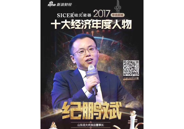 近日,由新浪財經、人民日報等聯合出品的2017華北地區“十大經濟年度人物”頒獎盛典在濟南舉辦,山東龍大肉食品股份有限公司董事長紀鵬斌從65位華北地區商業精英候選人當中脫穎而出。